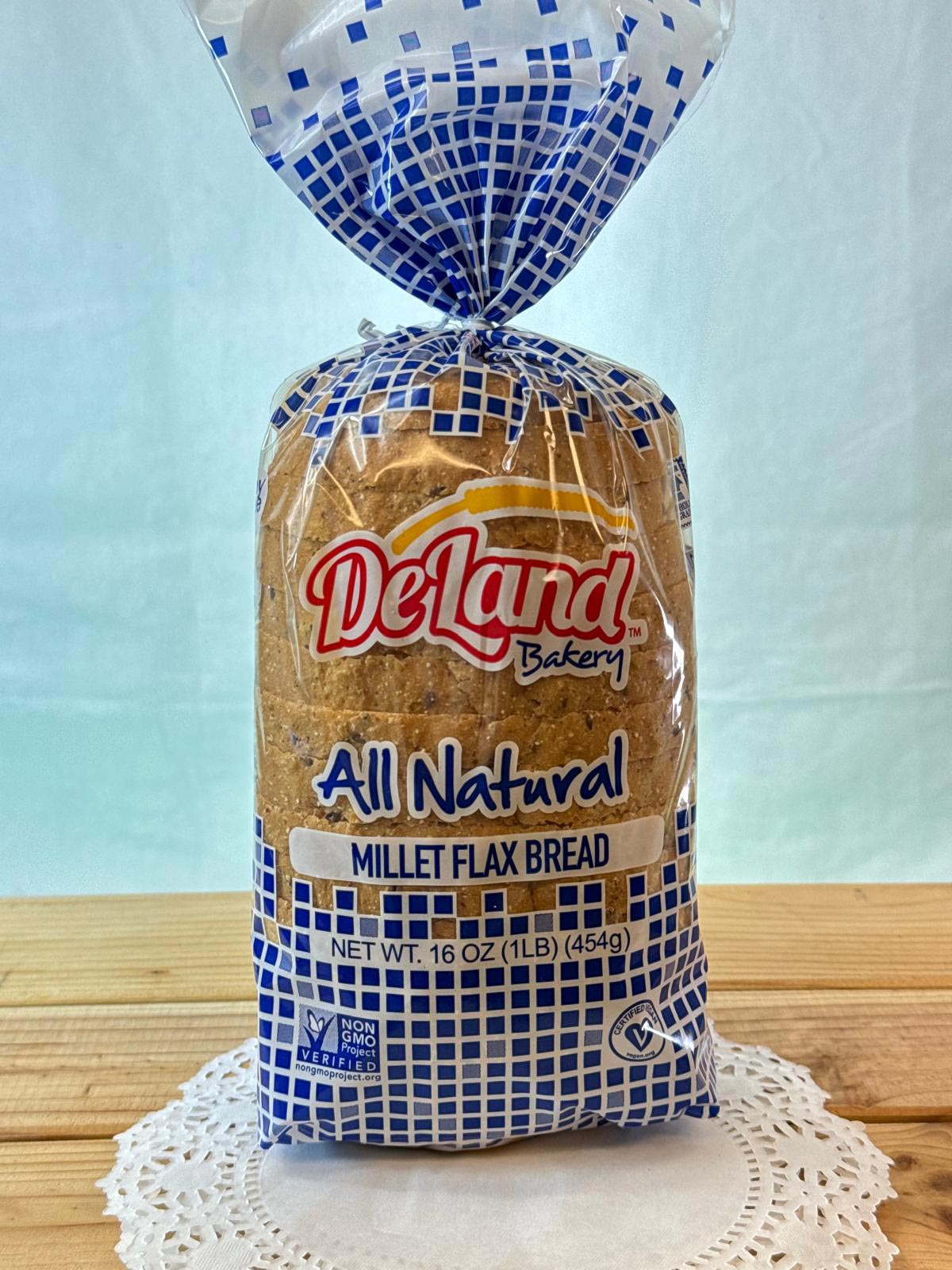 We love the All Natural Flax Millet Bread. It has little bits of flax in it and adds a slight crunch to the bread when toasted. It is great for all sandwiches whether toasted, grilled or fresh from the package. My favorite is a toasty grilled cheese. We love DeLand Bakery and all of your products and great service. Thanks DeLand!